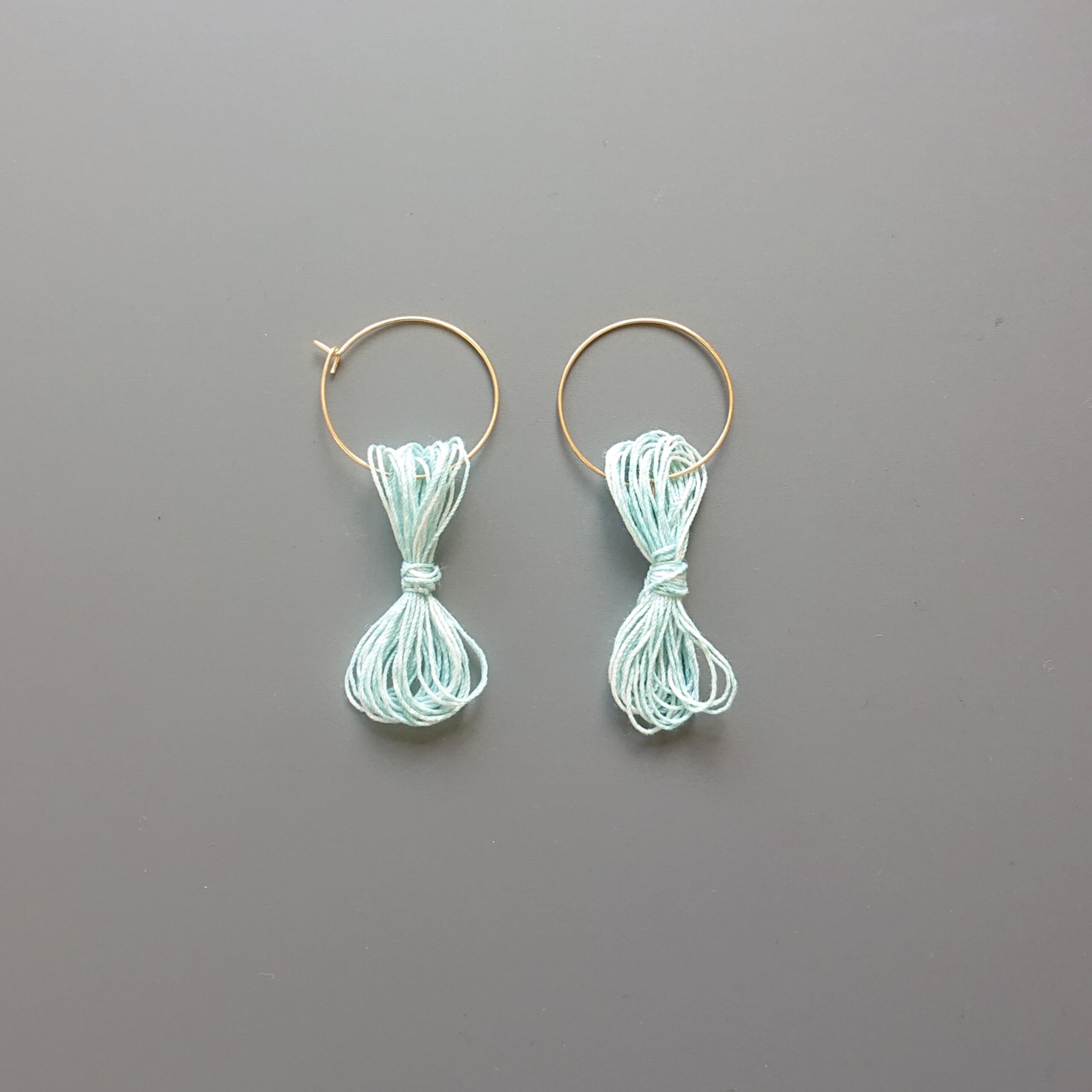 草木染めでは珍しいやわらかい青と白が耳元で揺れる