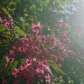 豊島のくさぎの実で染めました糸をくるくる結びました。