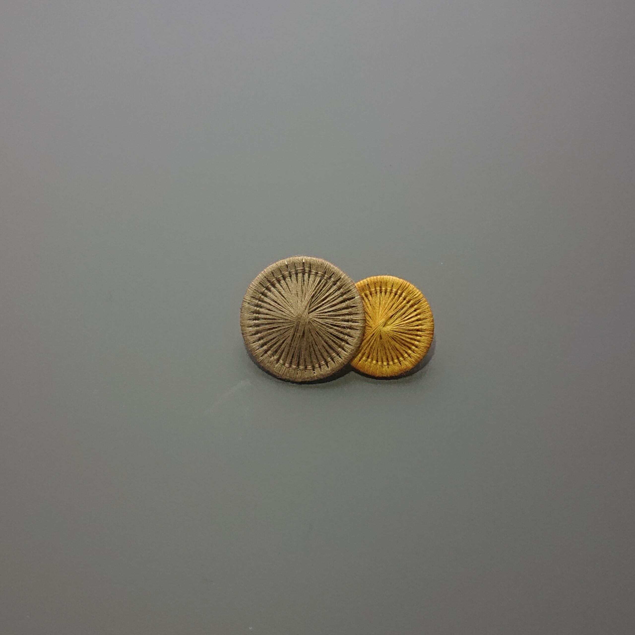 豊島のオリーブとヤシャブシの実で染めた糸ボタンの