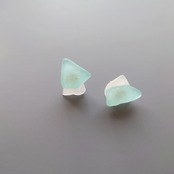 豊島の穏やかな海で見つけたシーグラスを重ねたかけらピアスです。