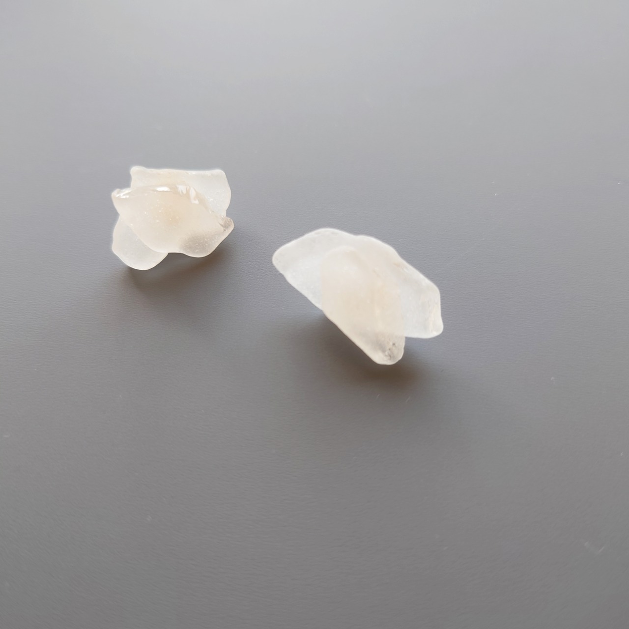 豊島の穏やかな海で見つけたシーグラスを重ねたかけらピアスです。